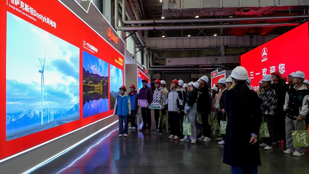 实践团队首先走进三一重工智能制造车间,开启产业前沿探索之行。在工作人员引导下,师生依次参观了智能生产车间、新能源装备展区与研发创新中心,近距离观摩大型挖掘机、风电整机等核心装备的生产流程。通过现场讲解与图文展示,师生深入了解了各种先进技术在装备制造中的广泛应用,以及三一重工在新能源装备研发与清洁能源生产等方面的创新成果。对产业一线的直观体验,为色情av影片架起了从课堂理论通向产业实践的桥梁。