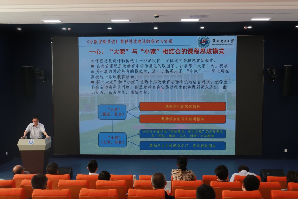 梁庚教授以“培育家国情怀,激励自主创新 ——《分散控制系统》课程思政建设的探索与实践”为主题,介绍了《分散控制系统》“一心五环”课程思政总体设计的理念与思路,并进行典型案例介绍。