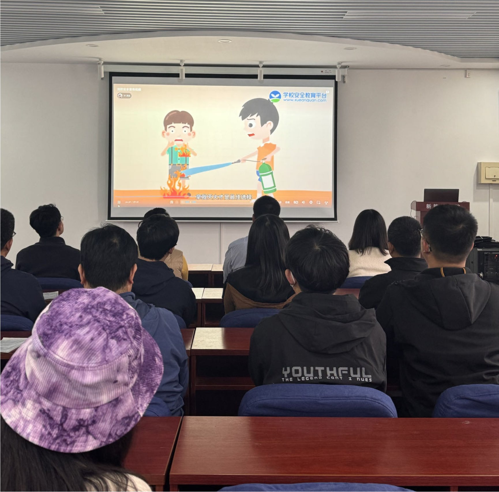 随后,全体师生共同观看了消防安全宣传片。宣传片通过生动的画面和详实的解说,向大家普及了火灾的危害、预防措施以及正确的逃生方法,进一步强化了师生的消防安全意识。